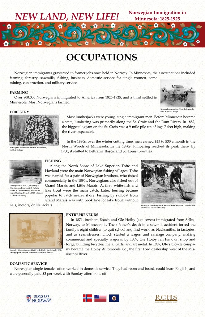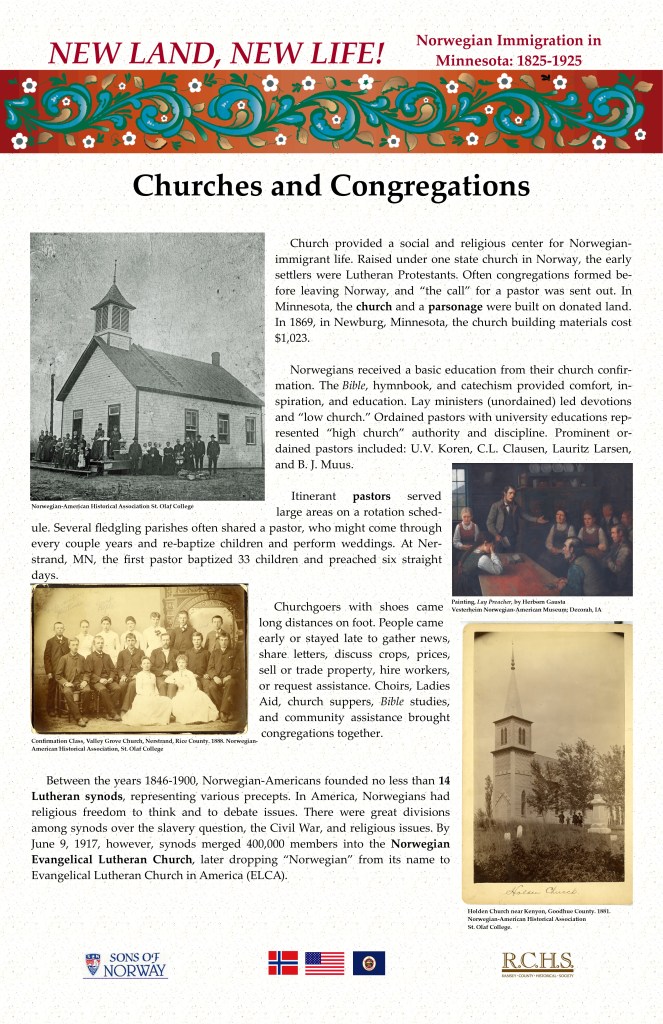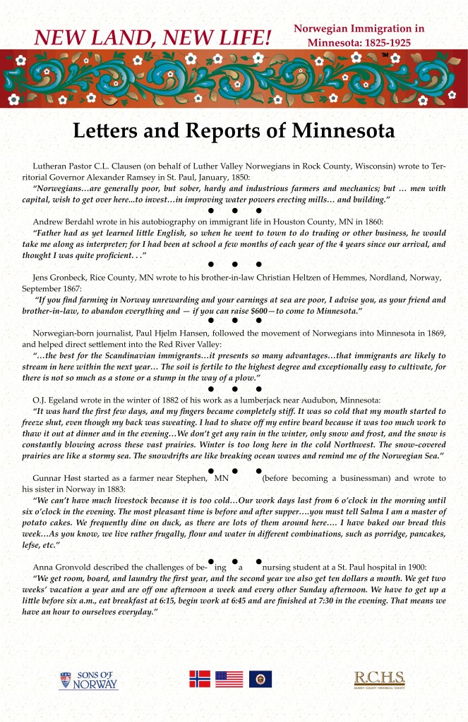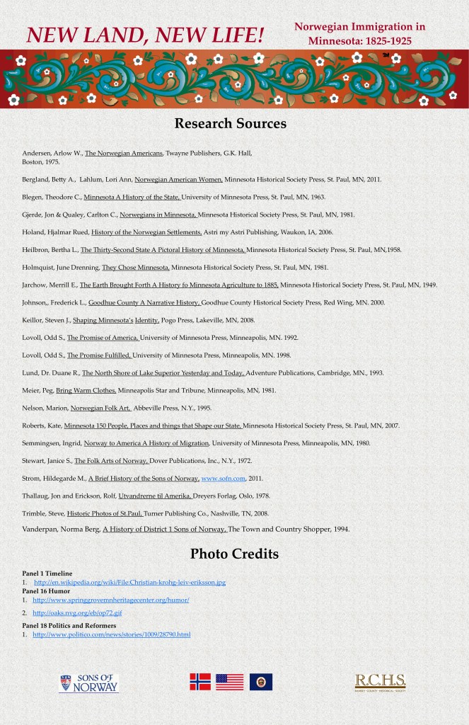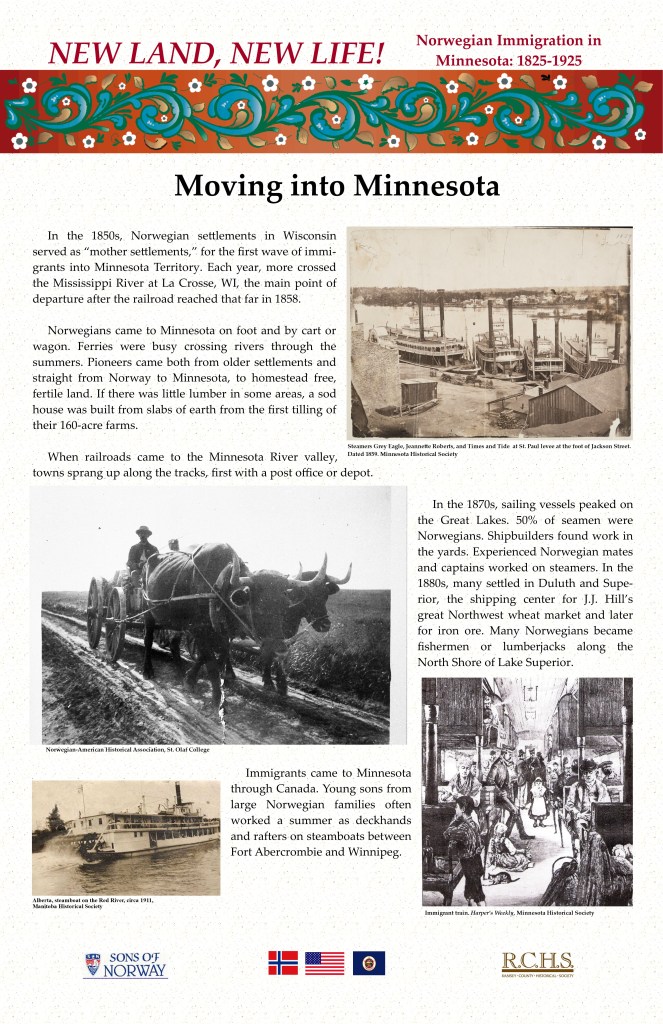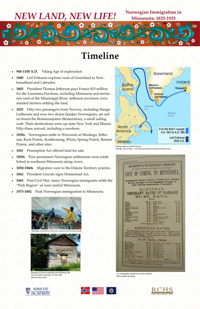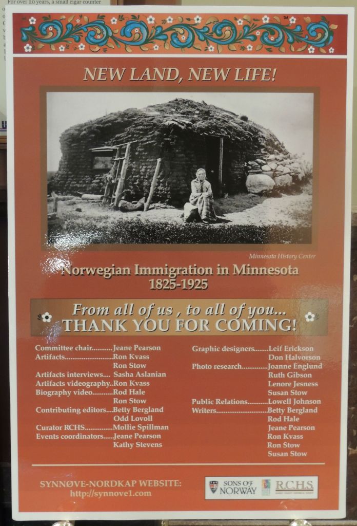 These photos show the original twenty panels of Synnøve – Nordkap Lodge’s museum exhibit New Land, New Life: Norwegian Immigration to Minnesota, 1825 – 1925