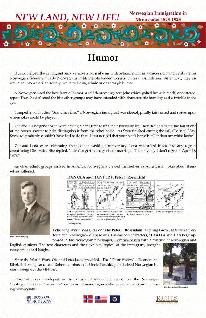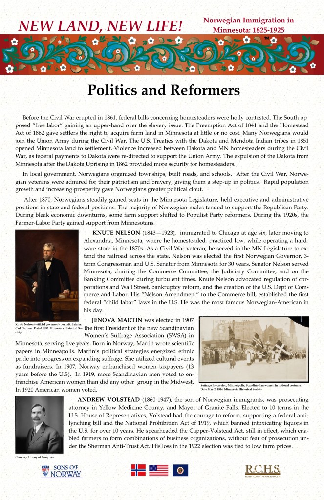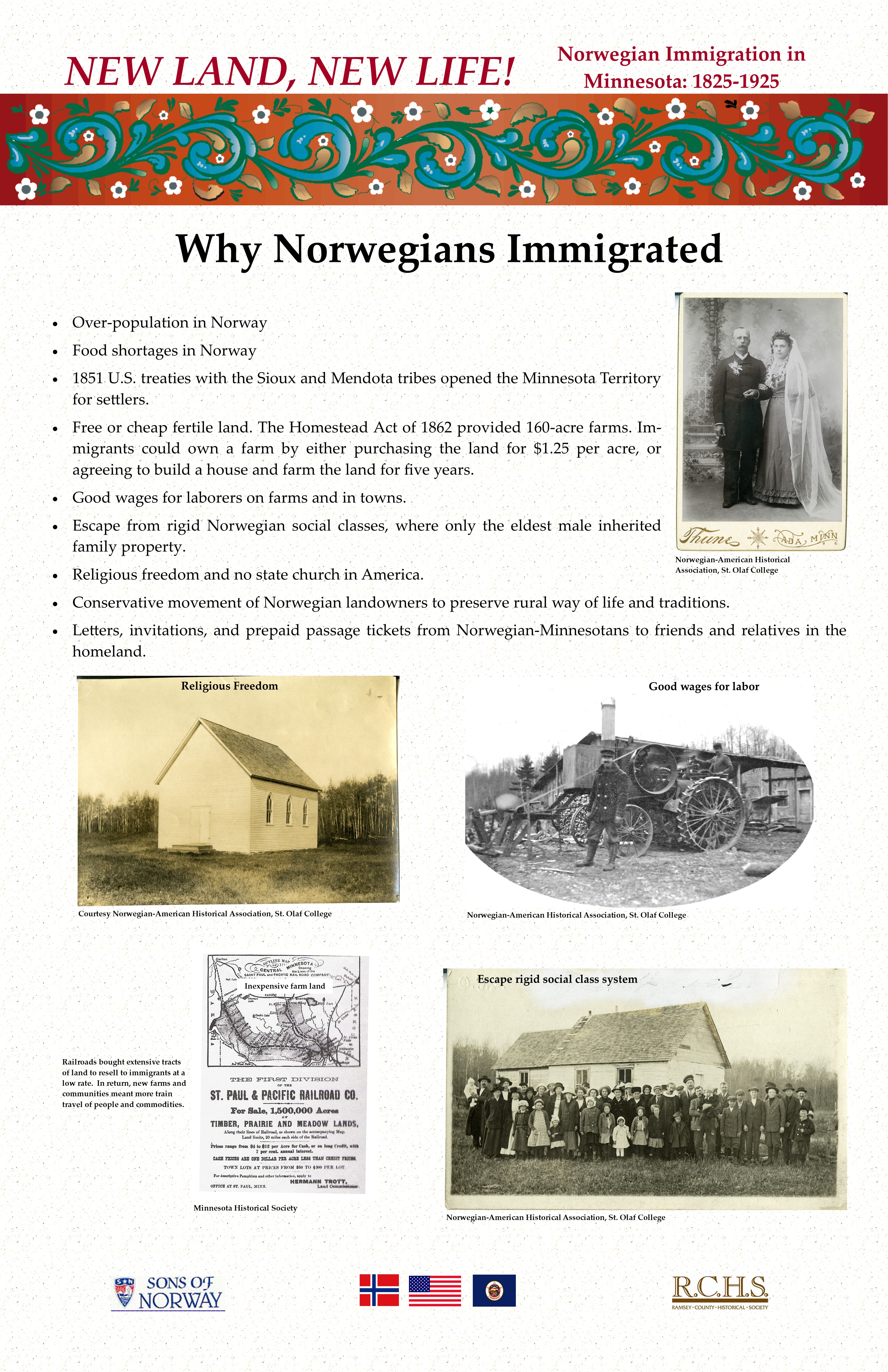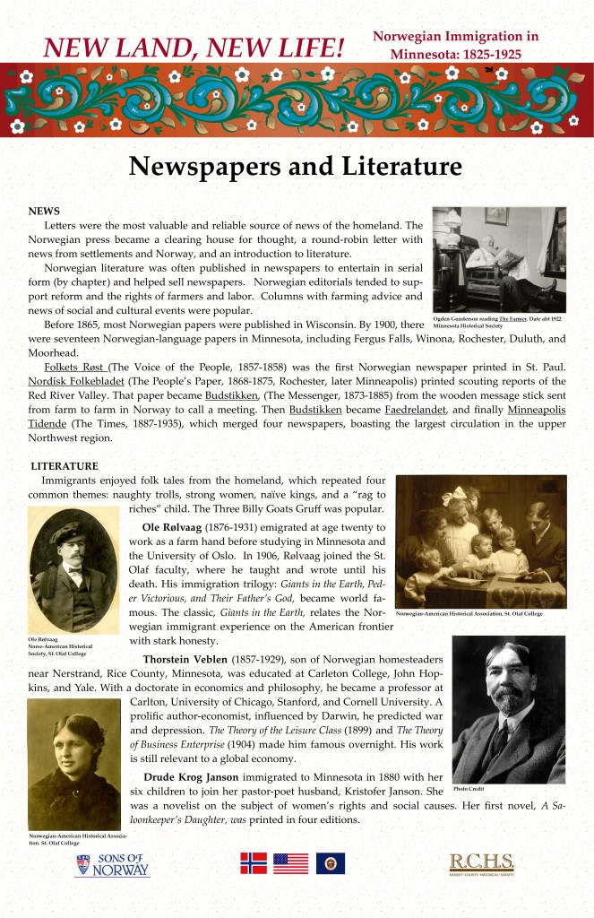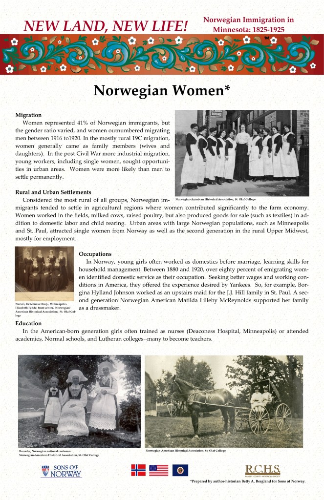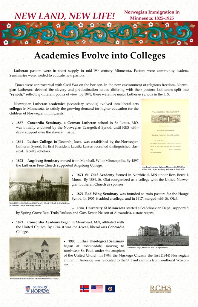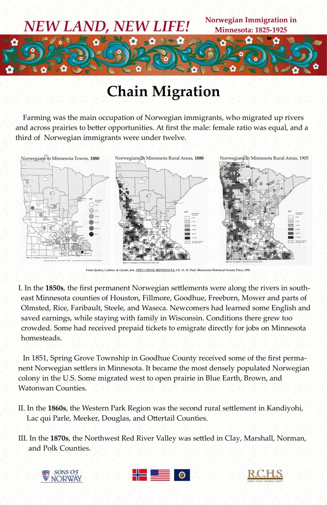 These photos show the original twenty panels of Synnøve – Nordkap Lodge’s museum exhibit New Land, New Life: Norwegian Immigration to Minnesota, 1825 – 1925